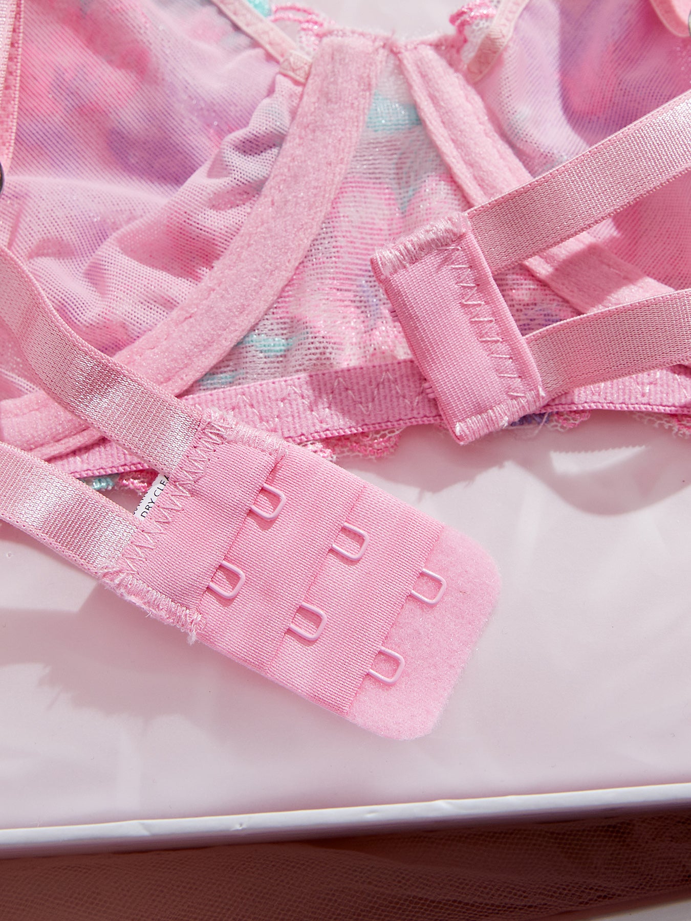 Sexy Floral Embroidered Mesh Sheer Underwire Lingerie Set