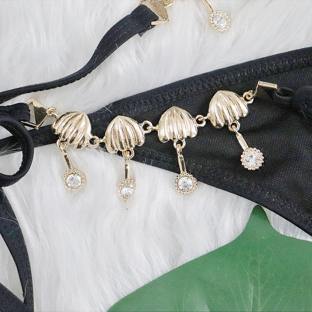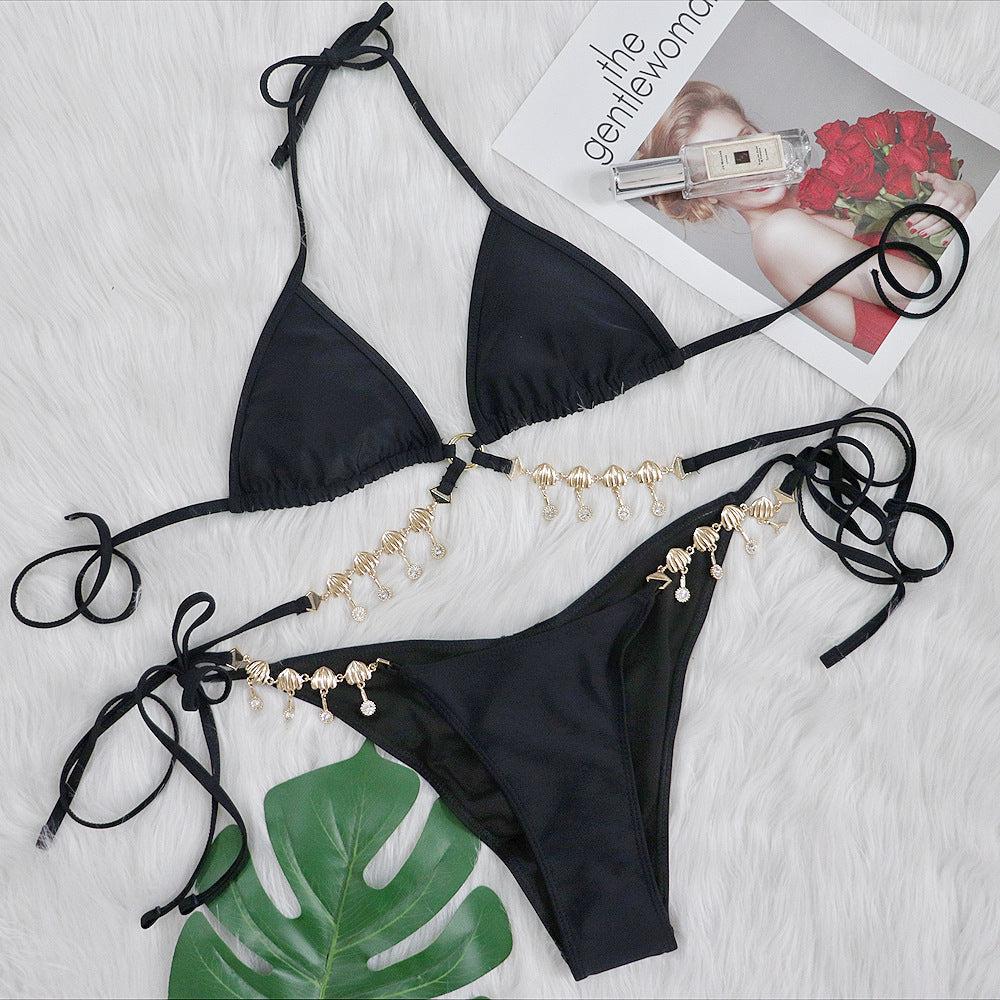 Women's Triangle Bikini String Swimsuit Print Tie Smocked Ruched Two Pieces Bathing Suit Set